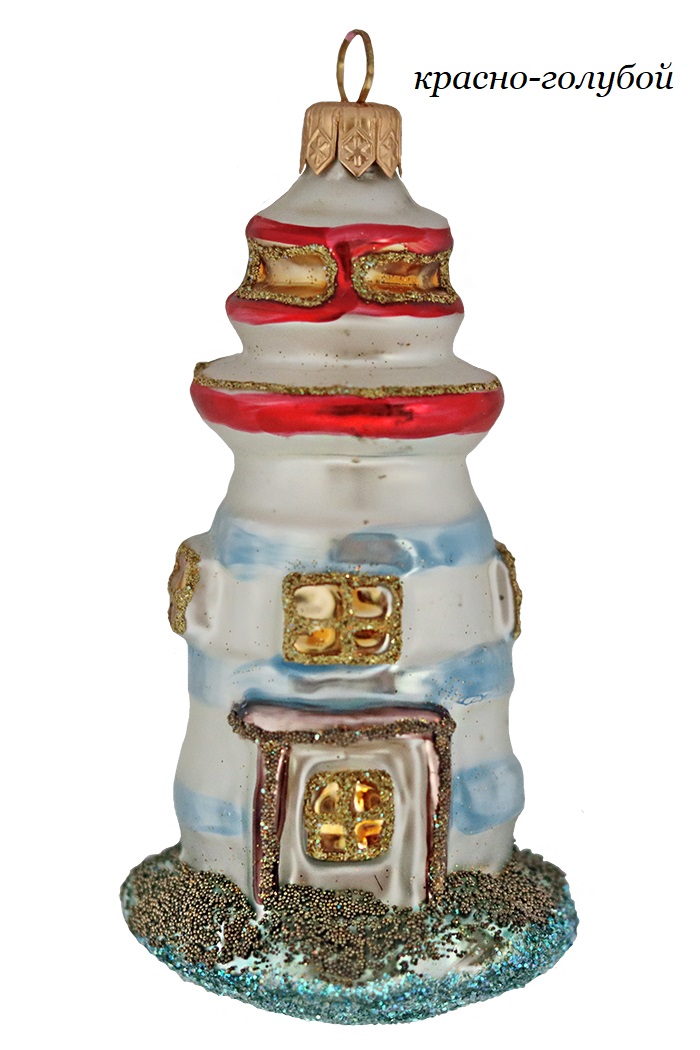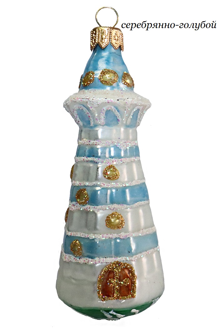 Украшение Маяк выполнено из стекла, декорировано переливающейся крошкой и золотым мелким бисером. В индивидуальной упаковке. Цвета в ассортименте. Размер 11см.