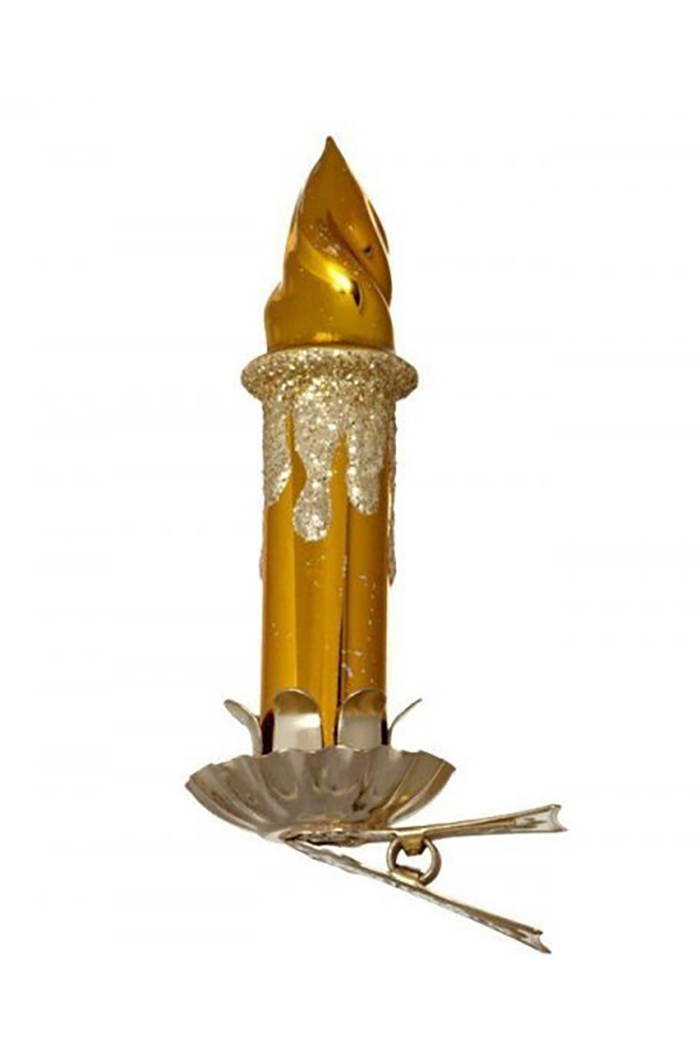 С таким украшением ваша елка будет смотреться в особом колорите. Свеча придаст особый изыск наряду лесной красавицы. Сделана очень реалистично, словно свеча горит давно и с нее капает воск, который застыл в виде блестящей крошки. Украшение для удобства имеет прищепку. Размер 8,7 см. Цвета в ассортименте.