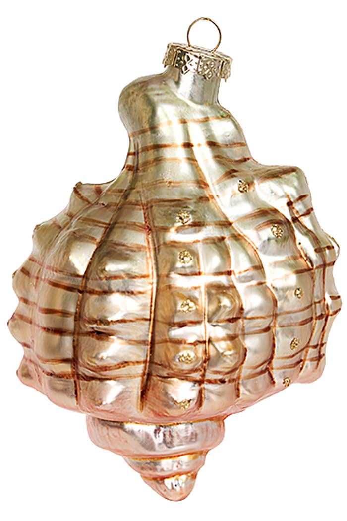 Елочное украшение Ракушка Тритон, декорировано стразами и бусинами, выполнено из стекла. Размер 9х7,5х11,5 см