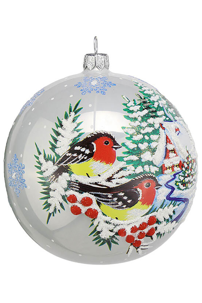 Шарик 11,5 см. Декорирован росписью в виде рисунка заснеженного терема, а также переливающейся крошкой. В индивидуальной упаковке. Украшение для удобства имеет ушко для ниточки или крючка. Небольшими шариками можно украсить елочку, а также составить мини-гирлянду, собрав на декоративные ленты несколько шариков вместе. Шариками принято украшать новогоднюю елочку, а также декорировать хвойные гирлянды, вписывать в композиции, подвешивать на любые уместные предметы интерьера. Елочка или интерьер, украшенные шариками будут смотреться невероятно празднично и эстетично, особенно, если выдержать все украшения в одной цветовой гамме или стиле.