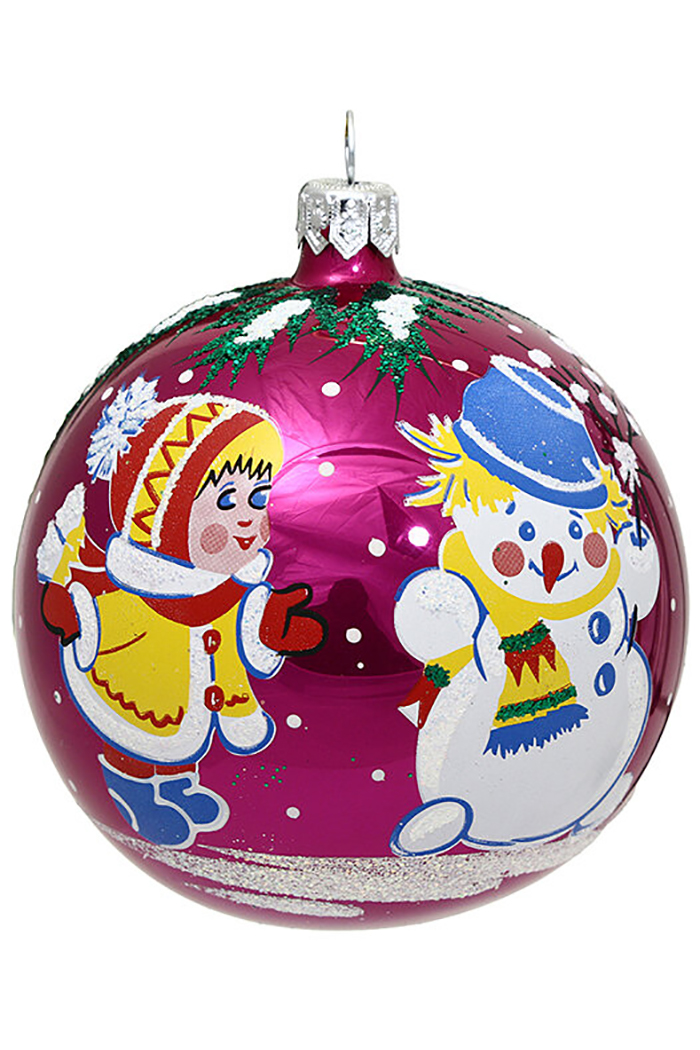 Шарик выполнен из стекла. Декорирован росписью, а также переливающейся крошкой (в зависимости от вида). Имеет ушко для ниточки или крючка.