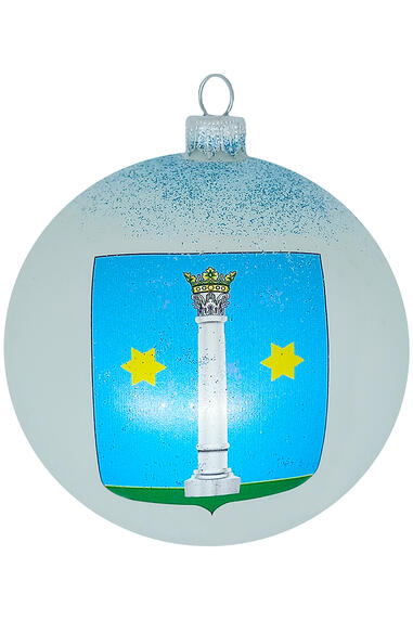 Шар выполнен из стеклопластика в зелено-золотом цвете, декорирован переливающимися стразами. Для удобства подвешивания игрушка имеет ушко и веревочку. Диаметр 10см.