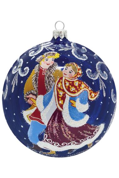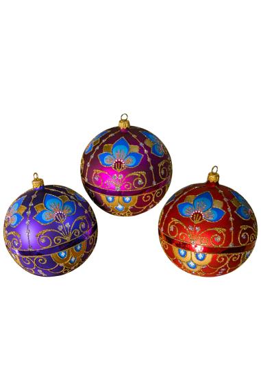 Шарик выполнен из стекла, декорирован ручной художественной росписью, а также переливающийся крошкой. В индивидуальной упаковке. Размер 9,5 см. В ассортименте.