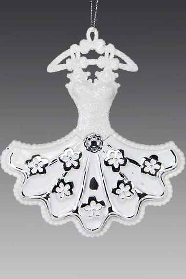 Конус выполнен из стекла в невероятно нежных оттенках бело-розового цвета, белая часть с матовым покрытием, золотые блёстки со стразами разделяют игрушку на 2 цветные половинки. Для удобства подвешивания игрушка имеет ушко и бархатную ленту. Размер 12см.