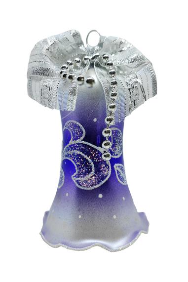 Шар выполнен из стекла в пурпурном цвете с переливающимся эффектом в стиле аквариум. Для удобства подвешивания игрушка имеет ушко и бархатную ленту. Диаметр 10см .