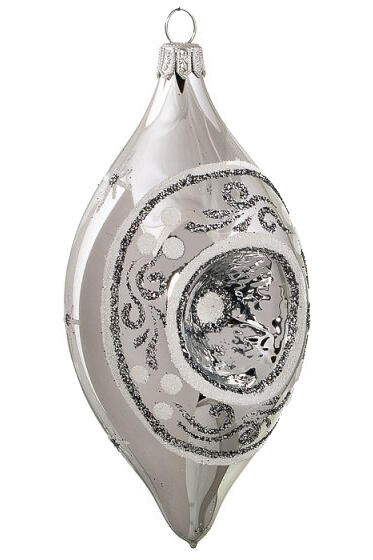 Украшение выполнено из стекла, декорировано росписью и переливающимся глиттером. Для удобства подвешивания игрушка имеет ушко. Размер 11 см. В индивидуальной упаковке.