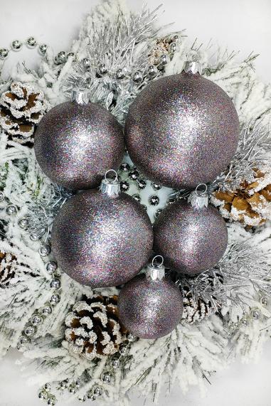 Набор пластиковых шаров диаметром от 5,5 до 8,5 см. В наборе: 6 шаров серебряного цвета с искристым покрытием крупными хлопьями глиттера. Материал: пластик. Упаковка: прозрачный пакет. Новогодние пластиковые искристые шары станут прекрасным новогодним атрибутом и дополнят праздничный декор, прекрасное украшение для елки в одном цвете. Все шарики, для удобства, имеют ушко.