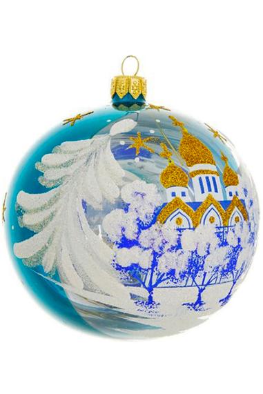 Шарик выполнен из стекла, декорирован ручной художественной росписью, а также переливающейся крошкой. В индивидуальной упаковке. Размер 9,5 см. В ассортименте.